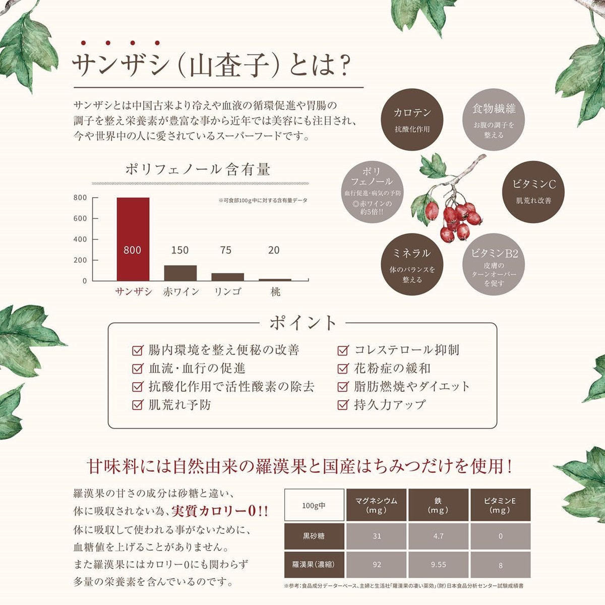 サンザシ濃縮エキス、羅漢果、はちみつ(国産)